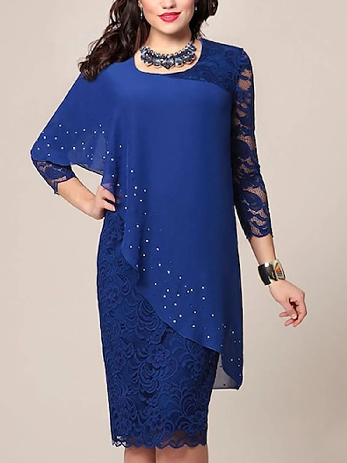 ❤Product Display of This High-quality and Beaded Prom Gown Elegant Evening Dress Scoop Neck Knee Length Chiffon Lace 3/4 Sleeve A-Line Formal Wedding Guest Dress